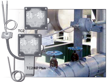 The TC2 and TC2/XP Plus, equipped with two adjustable control thermostats, are designed for heat tracing applications where a high temperature limiter is required.