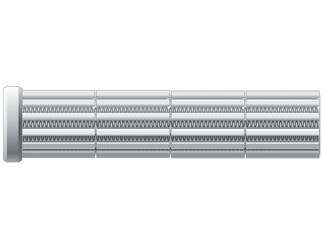 The pipe material is preferably a heat resistant stainless steel. Elements are usually mounted horizontally. For vertical mounting, elements must be specially constructed to prevent sagging of the heating spiral inside the element grooves.